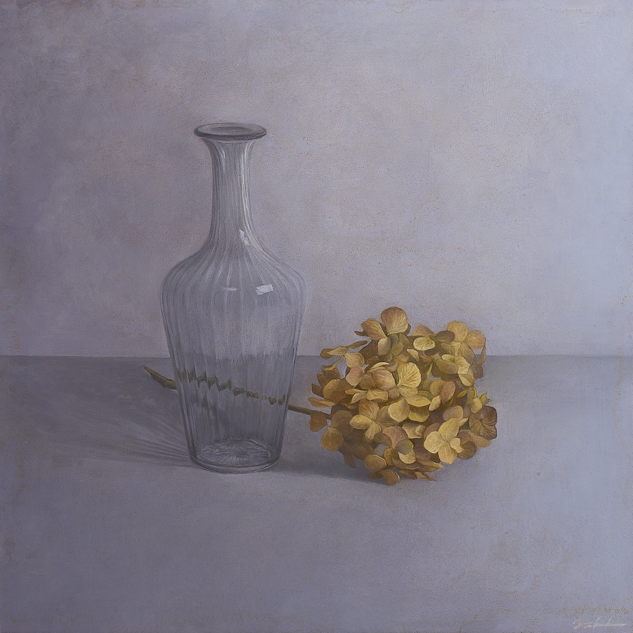 I explore an expression in which deep colors created by layering oil paints make you feel the gentle light and time in the painting.