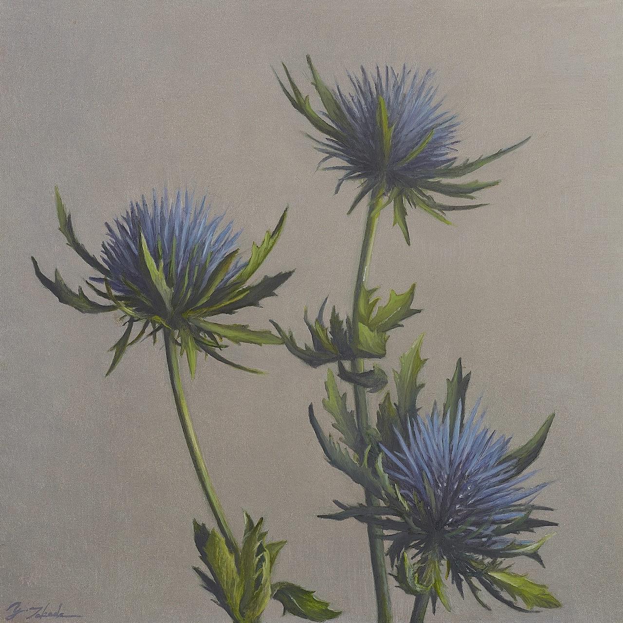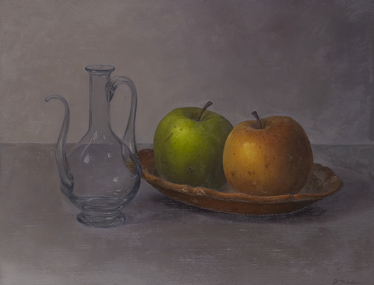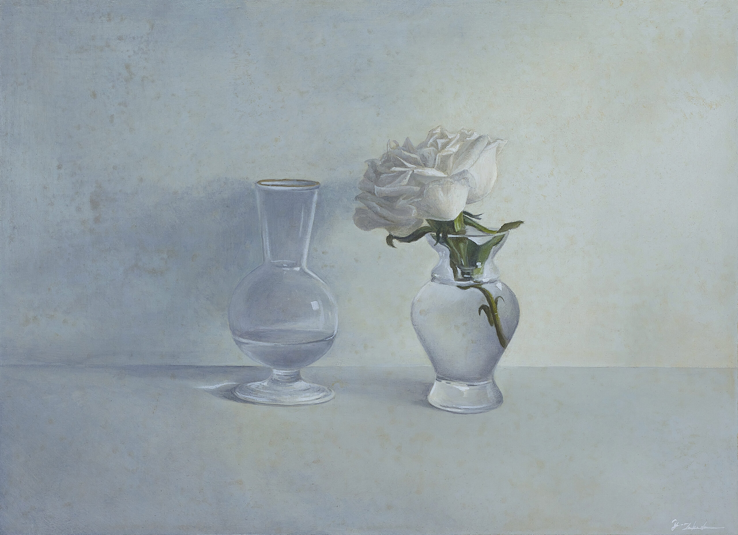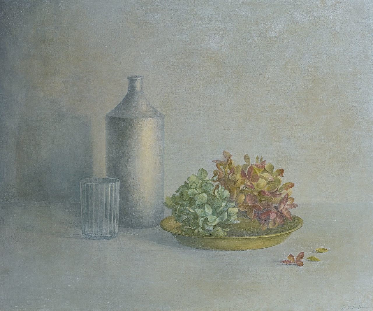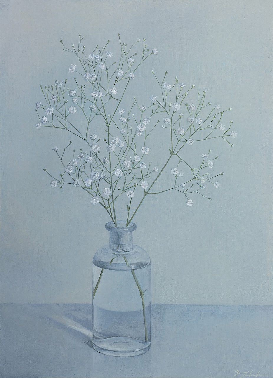 I explore an expression in which deep colors created by layering oil paints make you feel the gentle light and time in the painting.